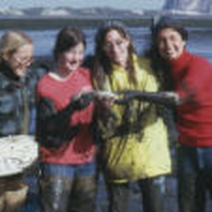 Cathy Corison, Laurie Christensen, Carol Penning, and Debbie Williams pose with their saltwater clam.