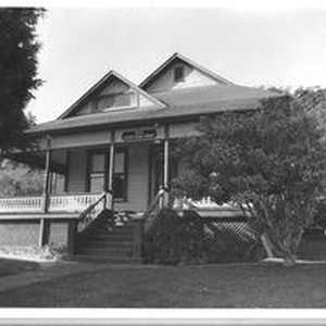 Photo, black and white: Sebastopol house at 354 South Main Street, Queen Anne Street built in 1895 in the Calder Addition. House photographed in 1993 by Evelyn McClure for her book "Sebastopol, California : History, Homes and People."