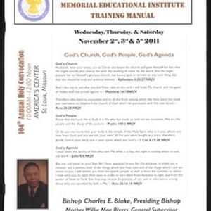 104th Annual Holy Convocation, Church of God in Christ (COGIC), educational institute training manual, Memphis, Tennessee, 2011 November 2, 3 & 5. [Description English/roman)]
