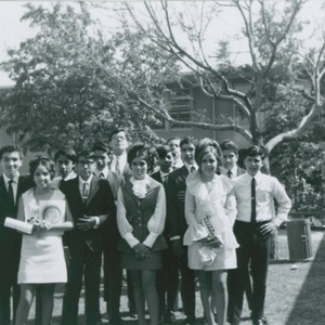 Graduating class on the grounds of Stevenson Junior High School, 1968.