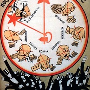 A poster printed during the Russian Civil War (1917 - 1923). Caption reads, "Poslednii chas / Последний час", meaning, "The last hour". [Description English/roman)]