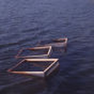 Three of Jon Kott's dragonfly cages floating in the lake.