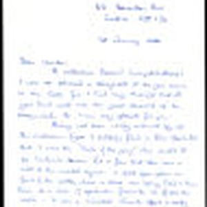 Letter of correspondence to Charles Handy expressing congratulations to Handy for his recognition in the CBE. The writer states that he/she had always believed that Handy's work deserved to be recognized through the years with such an honour. The letter proceeds to talk about taking in a viewing of Ludlow's beacon live during the New Years celebration. The letter closes wishing Charles and Elizabeth a happy new year.