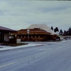 Print, color: New offices at Petaluma Avenue and Burnett Street. Daryl Davis Insurance building. To the left a new Real Estate office building which was previously the site of an apple packing shed. about 1970s.