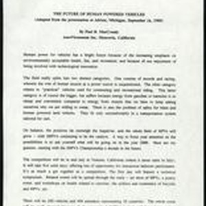 1989 September 16. Part of: Paul B. MacCready Papers ca. 1930-2002. Series 4: Writings and publications; Subseries 2: Talks; Box 10, Folder 9