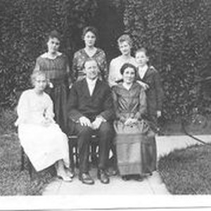 Photo, black and white:Ed and Rhoda Smith family with Amelia, Anne, Ruth, and Alma and William. June 25, 1918 KINGWELL/JONAS/SMITH