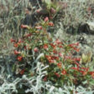 Bush with red flowers and dark green leaves grows in a gully behind Christi Ranch.
