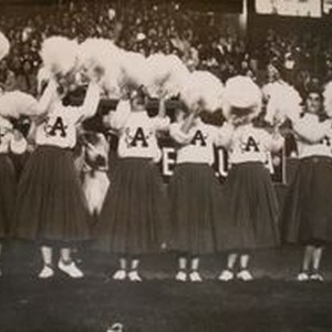 Photo--Black and white: Analy High School Tigers Football. The Analy Pom Pom Girls cheerleaders circa 1960. Photograph by Stone Photo Bob Stone 1925 Alderbrook Santa Rosa, CA