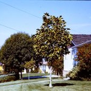 Slide, color transparency: Daniel Street at Tocchini Street in the Belmont Terrace neighborhood of Sebastopol, California, 1970