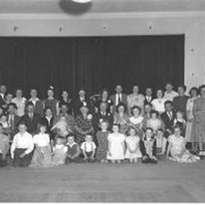 Group photo of the 50th anniversary of John Francis and Retta (Henrietta) Craig Brians March 13, 1949 at the Penngrove Club House in Penngrove, California
