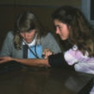 Joanne Norman and Beth Savidge taking their blood pressure.