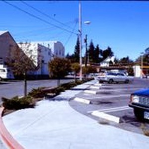 Slide, color transparency: City street in Sebastopol. Purity store is seen at the right. 1970.
