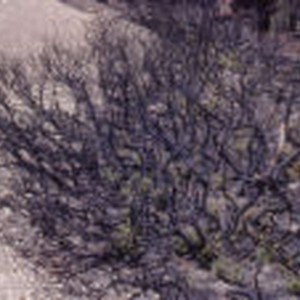A bush six months past fire in Ice House Saddle area of Ice House Canyon.