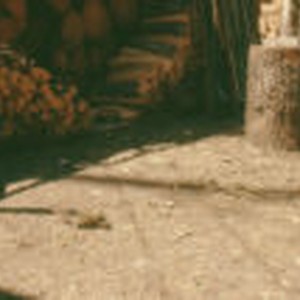 A chipmunk walking on the dirt ground close to Riechel's cabin.