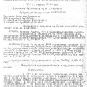 Criminal verdict of Mikhail Il'ich Luchinets and Kseniya Mikhailovna Agarkova, Odessa, Ukrainian SSR, 1951 November 27-28 (sentence), 1954 August 11-12 (conclusion), 1966 March 28 (decision), 1966 September 28 (decree 538-66). Findings in the case in which Luchinets and Agarkova were accused of preaching anti-soviet beliefs under the guise of religion. [Description English/roman)] Уголовный приговор Михаил Ильич Лучинец и Ксения Михайлова Агаркова, Одесса, Украинской советской социалистической республики, 1951 ноября 27-28 (приговор), 1954 августа 11-12 (заключение), 1966 марта 28 (постановление), 1966 сентября 28 (постановление 538-66). Выводы в случае , в котором Лучинец и Агаркова обвиняли в проповеди антисоветские убеждения под прикрытием религии. [Description (original non-English/roman language/script)]