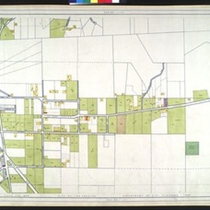 WPA Land use survey map for the City of Los Angeles, book 2 (Tujunga), sheet 22. Includes: [Title page and] legend [for Book] no. II Composite index to Land use map books [for Book 2] Index to Book no. 2. Land use survey - City of Los Angeles. Department of City Planning. These maps were prepared with the assistance of the Works Progress Administration project no. 665-07-G-226 through 1939 to 1940. The land use data contained herein was compiled from a survey made with the assistance of the Civil Works Administration project no. 642, State Emergency Relief Administration project nos. 1-F2-318 and 1-F2-318A and Works Progress Administration project nos. 65-3-4377, 1101-2011 and 465-03-3-106. This survey functioned from Dec. 18, 1933 to May 8, 1939 and covers approximately 460 square miles within the boundary of the City of Los Angeles. It includes 347 colored drawings bound in 10 volumes of which this is no. II. The land use survey was supervised by the Zoning Engineer. The land use maps were supervised by the Illustrative Planning Engineer for the Sponsoring Department.