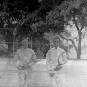 Photo--black and white, from Borba 8" x 10" celluloid negative: The 1925 Analy Union High School Tennis team picture taken for the yearbook, Azalea. L to R: Sterling Everett and Delmas Alten.