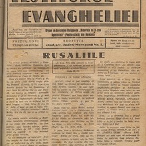 The herald of Gospel is the periodical publication of the biggest romanian penticostal group between 1953-1989. [Description English/roman)] Vestitorul Evangheliei este publicatia periodica a grupului penticostal majoritar din Romania intre anii 1945-1948. [Description (original non-English/roman language/script)]