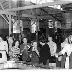 Meeting of representatives of San Francisco State College, University of California (Davis) Ag Department, Spice Islands Co., SF Schools, Sunset Magazine and Paul LeBaron of Clyde LeBaron Co. at the Hallberg cannery in Graton, California, 1960s