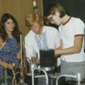 Adrienne Diech, Craig Westin, and Doug Dobbin use a kymograph on a frog heart.