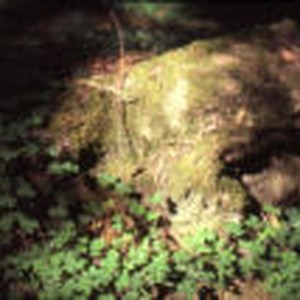 Green three-leaved plant surrounding a rock in Rockefeller Grove.