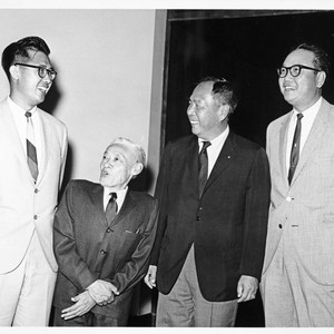 From left to right: Jackie Wong Sing, Y. C. Hong, Wilbur K. Woo, and unidentified man.