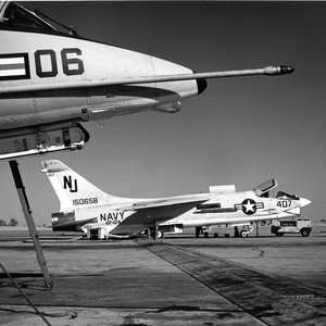 Title:F-8J Crusader US Navy photo by Robert Lawson - Image from the Ray Wagner Collection. Ray Wagner was Archivist at the San Diego Air and Space Museum for several years and is an author of several books on aviation --- ---Please Tag these images so that the information can be permanently stored with the digital file.---Repository: San Diego Air and Space Museum