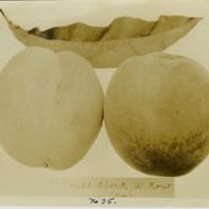 Photo, black and white: Two plums. Caption: "south block, west row No. 35 (ET)." ET means Entire Tree. Circa 1930