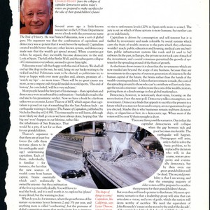 Charles Handy article exploring the necessity of investment in human capital for the future of capitalism and democracy. Handy begins the article discussing the thought of Francis Fukuyama, whose argument that the combination of capitalism and democracy would never be replaced made him into a global guru. He proceeds to note how the argument in Lester Thurow’s new book, which states that capitalism is dangerously situated and about to topple--much like powerful earthquakes have leveled cities--needs to be taken into consideration as a counterargument to that of Fukuyama. Handy goes on to argue that capitalism is driven by consumption and self-interest but fueled by investment and a government-induced welfare system, and that, as the future increasingly becomes the present, the investments that will be needed are beyond the scope of business. He connects the lack of investment to democracies being notoriously short-term, and offers three possible scenarios for outcomes, his most optimistic scenario being that a leadership group will arise that can present a vision, a set of goals, which a nation will consider worthy of sacrifice for.