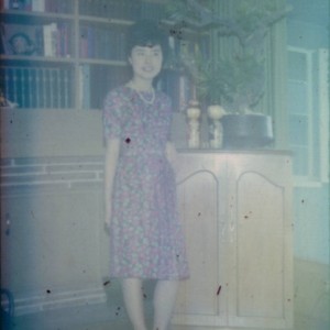 Image / Unidentified woman standing next to cabinet