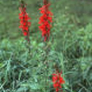Three cardinalflowers at Natchez Trace State Park, Tennessee.