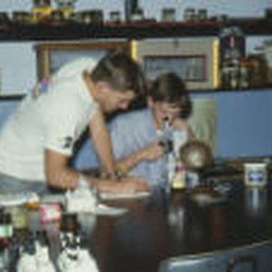 Chuck Sellman and Paul Kohnen look through a microscope for the inverted lab experiment in Biology class.