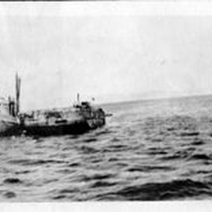 Photo--black and white: Bodega Bay photo, about 1910. Two fishing boats on Bodega Bay.