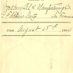 There are no known copyright restrictions associated with these digital images. We encourage the use of these images for personal, study, and educational purposes. Please credit “Courtesy of California State Archives.” The California State Archives and the Friends of California Archives cannot be responsible for any use of these images, or any liability resulting from their use. The Archives is interested in learning about any possible copyright restrictions and will gladly remove any image that is in violation.