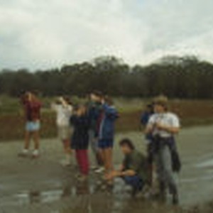 Advanced biology students bird watching in Morro Bay salt marsh. From left to right: Steve, Peggy, Amy, Matt, Laurie, Scott Kelley, Laurie F. and Chris.