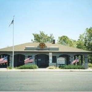 Photo--color: American flags line South Main Street of Sebastopol, California 2002. Local Boy Scouts place these flags in Sebastopol on national holidays. The West County Museum at 261 S. Main is seen.