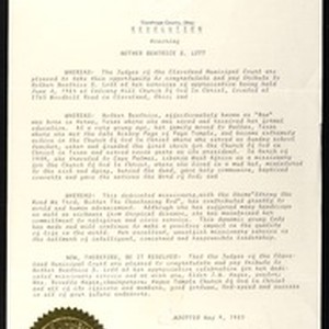 Cleveland Municipal Court resolution honoring Beatrice S. Lott, 1983 May 9. [Description English/roman)]