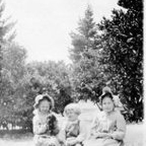 Photo--black and white: Blanche Riddell, Vernon ? and Alice Riddell. The Riddell sisters are grandchildren of Otis Allen and the children are possibly at the Riddell property on Vine Hill, Sebastopol, CA, about 1908.
