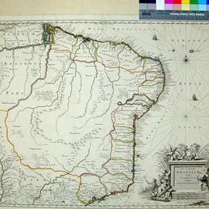 Kashnor dates as ca. 1660. Van der Krogt identifies this as his 9850:2C, which appeared in Joan Blaeu's 1662-1665 Atlas Maior (2:601). Cartouche: Putti with produce. Prime meridian: Ferro. Relief: pictorial. Graphic Scale: Milliarium. Projection: Cylindrical. Watermark: Db. Printing Process: Copper engraving. Verso Text: MS note: 881.