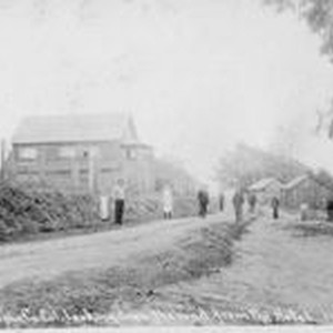 Photo--black and white: Bodega Bay photo postcard, about 1910. Caption: " 'Bay'. Sonoma Co Cal. Looking down the road from the Hotel. ICA #3"