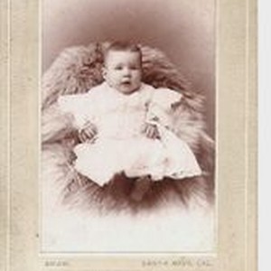 Photo--sepia, studio matted: Gertie Sharp at four months old, about 1905. Gertie is the sister of Clifford, Lester and Ethel Sharp and child of Mr. & Mrs. Earl Sharp. Shaw Studio, Santa Rosa, CA