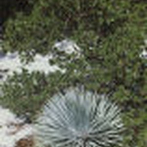 Manzanita and yucca in snow at Snowcrest.