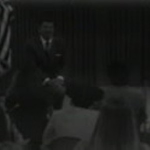 Juniors from Hiram Johnson High School, Sacramento, ask Governor Ronald Reagan questions in press conference format. Part of a televised series of question-and-answer sessions with high school students conducted by Ronald Reagan as governor of California, relating to California state political issues. Produced by JRH and Associates, Inc.Additional Descriptive Notes: Sequence: Part 1: Slate (00:57), opening sequence (01:15), Reagan introduces program (01:28), first question, concerning whether Reagan views Joseph Alioto, mayor of San Francisco, as a major threat to Republican fortunes, closing credits (29:14). Part 2: Slate (00:22), opening sequence (00:38), Reagan introduces program (00:53), first question, about whether Reagan will ever go back to show business (01:15), closing credits (28:39).