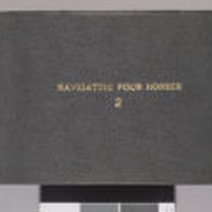 Bound in textured black material. The title, "Navigating Four Horses 2," is embossed in center of cover in gold lettering. The number "72" is affixed to top of spine with glue. Images are of small towns and landscapes taken during Jack and Charmian's summer trip via horse-drawn carriage, through Northern California and Southern Oregon. Very light wear on surface and edges. Light wear along edges of spine.