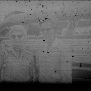 Image / Two unidentified women (Peters relatives?) standing in front of a bus
