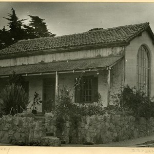 Adobe, Monterey, California: corner house view w/stone steps and wall [502 Pierce St.].