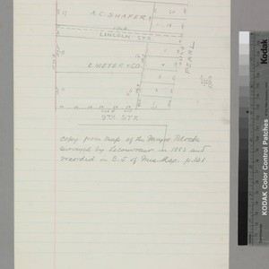 Verso of pg. 1 of pinned document, "Miss. Hammond..." showing parcels along 9th & Pearl Street [aka Chapuline St.], with parcel owners, courses, distances, Lincoln Str.. Title supplied by cataloger.