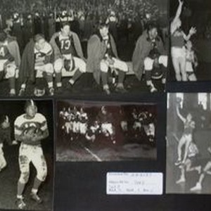 Photo--Black and white: Analy High School Football fall1952--three photos on left. Two photos on right--Analy Tigers basketball 1953.