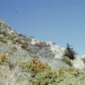 Greenery on slope above landslide area.