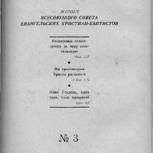 In 1945, The United Union of Evangelical Christians (EC) and Evangelical Christian Baptists (ECB) published the first issue of the Brotherly Herland. Iakov Ivanovich Zhydkov, chairman of the national (USSR) Union of Evangelical Christians and Baptists, became the chief editor. The editorial committee consisted of M.I. Golyaev, M.A. Orlov, and Alexander Vasi'yevich Karev. The leadership of the NUECB (all-National Union of Evangelical Christian Baptists) set the main task of the journal to form "Unity" in the midst of protestant churches of the moderate type. Thus, in the preface of the first issue of the journal it was stated, "The task of the Brotherly Herald is to work in such a way that unity might penetrate the bodies and blood of all brothers and sisters and become indestructible even going through tests and difficulties. May the Lord Himself make one united nation of two movements in His Name. Our mottos are the words from the Holy Scripture, they are dear to our hearts, 'We preach Christ crucified' (1 Cor. 1:23), 'Stand firm in one spirit, contending as one man for the faith of the gospel' (Phil. 1:27), 'One Lord, one faith, one baptism' (Eph. 4:5)". ❧ The second purpose of the periodical (which was to be published every other month) was to inculcate "correct training" of church members (correct from the spiritual as well as civic points of view). This purpose was successfully fulfilled by publication of texts of sermons, spiritually-edifying articles, official appeals and reports. The journal consisted of the following contents: 1. Religious and patriotic Evangelical Christians and Baptists and the Motherland. 2. Sermons and spiritual articles. 3. From history of the Evangelical Baptist movement in USSR. 4. From history of Christianity. 5. Biographies and necrologies of Evangelical Christians and Baptists. 6. Life and activity of NUECB. ❧ The address of the editorial office was in Moscow, Pokrovsky Boulevard, Maliy Vuzovsky Lane, 3. [Description English/roman)] В 1945 году объединенный союз ЕХ и ЕХБ издал первый номер периодического издания «Братский Вестник», главным редактором стал председатель Всесоюзного Совета евангельских христиан и баптистов Я.Жидков. В редакционную комиссию вошли Голяев М.И., Орлов М.А., Карев А.В. Основной задачей журнала руководство ВСЕХБ видело в формировании «Единства» среди протестантских церквей умеренного типа. Так в предисловии к первому номеру журнала писалось: Задача «Братского вестника» - так повести свою работу, чтобы дело единения вошло, в плоть и кровь всех братьев и сестер, чтобы оно стало нерушимым даже при испытаниях и трудностях, и чтобы теперь уже Сам Господь соделал из двух течений один народ во имя Свое. Нашими лозунгами являются дорогие всем нам слова Св. Писания: ‹Мы проповедуем Христа распятого› (1 Кор. 1, 23) ‹Стойте в одном духе, подвизаясь единодушно за веру евангельскую› (Фил. I, 27) ‹Один Господь, одна вера, одно крещение› (Ефес. 4, 5)». ❧ Вторая цель этого периодического издания которое планировалось издавать один раз в два месяца было прививать «правильное воспитание» членов церкви «как с духовной, так и с гражданской точки зрения» . Данная задача достаточно успешно выполнялась посредством публикации проповедей, духовно-назидательных статей, официальных обращений и отчётов. Журнал состоял из следующих рубрик: 1. Религиозно-патриотический Евангельские Христиане и Баптисты и родина. 2. Проповеди и духовные статьи. 3. Из истории Евангельско-Баптистского движения в СССР. 4. Из истории Христианства. 5. Биографии и некрологи Евангельских Христиан и Баптистов. 6. Жизнь и деятельность ВСЕХИБ. 7. Жизнь общин на местах. 8. Корреспонденция. ❧ Адрес редакции находился в г. Москве, Покровский бульвар, Малый Вузовский пер., дом. 3." [Description (original non-English/roman language/script)]